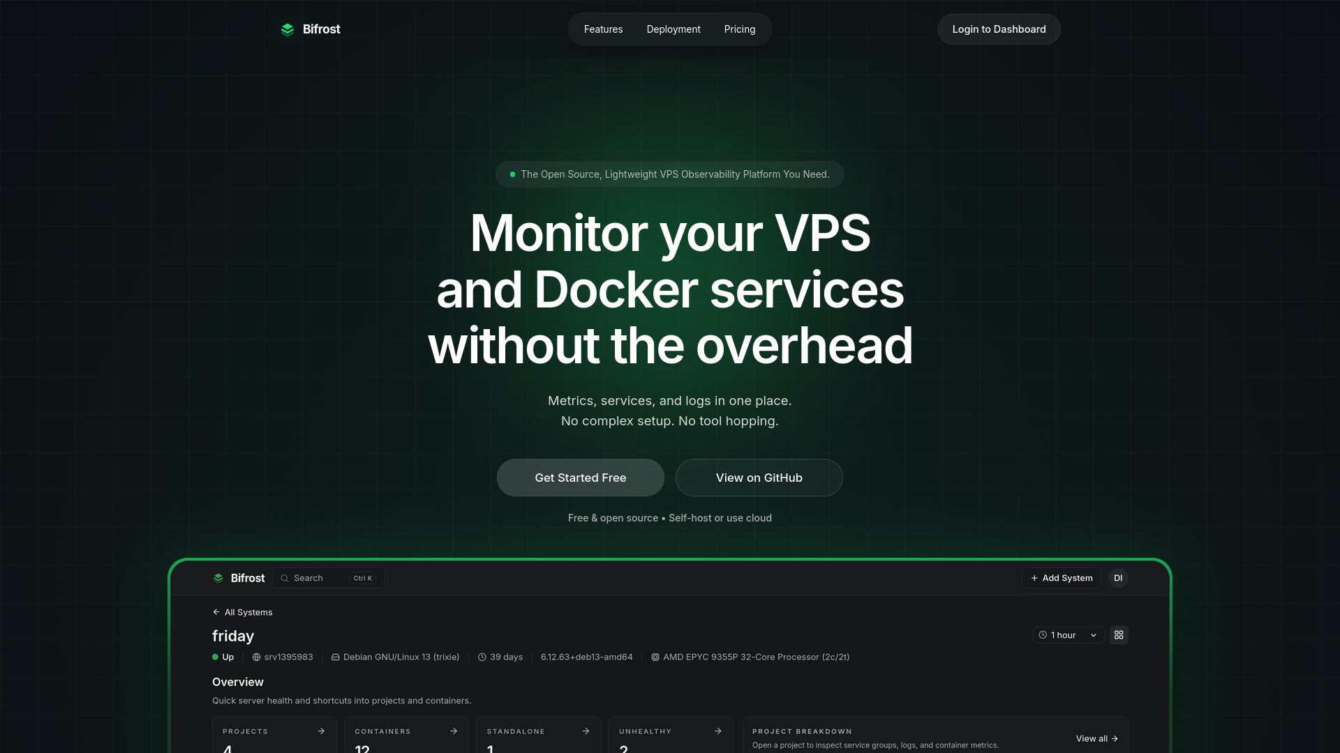 I run multiple servers and services, and I needed a simple way to monitor resource usage, spikes, and logs. Existing tools like Grafana and Loki felt too heavy for this. So I built a lightweight system where you install a small agent and start monitoring instantly from a single dashboard.